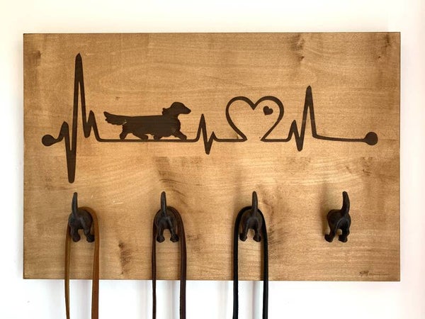 - TAGS: coat rack, dachshund, laser, engraving, dachshund buttocks, dachshund silhouette, heartbeat, longhair, solid oak, trendy, interior, luxury, cheerful, stylish, belt, jacket, bag, own design, eyecatcher.