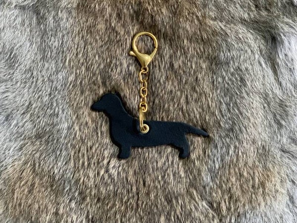- TAGS: key ring, bag pendant, dachshund pendant, dachshund pendant, leather, soft, comfort, black, dark brown, cognac, red, green, espresso, chocolate, chili, forest, gold, brass, sustainable, luxury, trendy, timeless, classic, collar , black, classy, dachshund collar, puppy collar, luxury for dogs, brass, stylish.